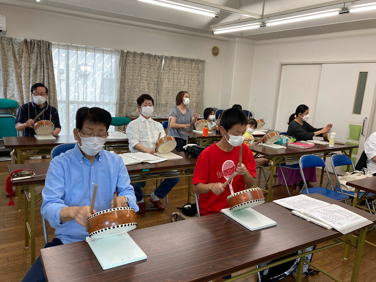 (1)コロナ明けの練習風景 (2022年5月) 感染防止に気をつけて3年ぶり稽古を再開 ![]() ![]() | |